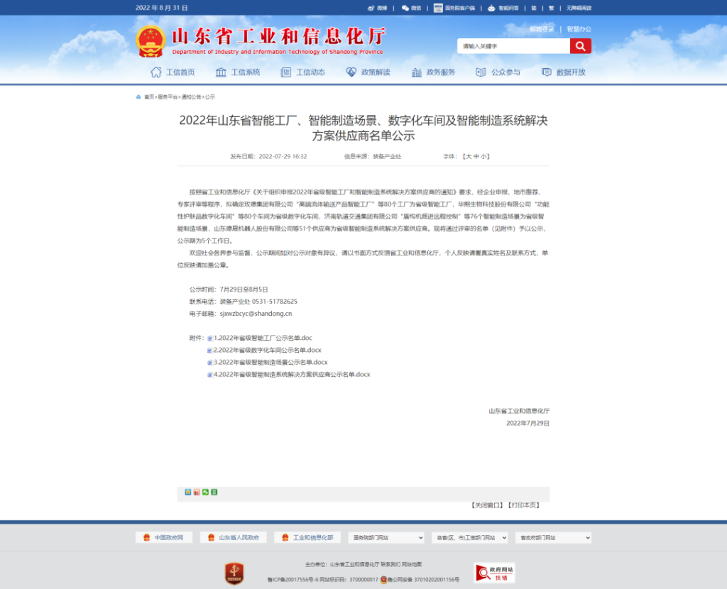日前,山东省工信厅对2022年山东省智能工厂名单进行了公示,东方电子旗下威思顿电气的“威思顿数智工厂”成功入选。