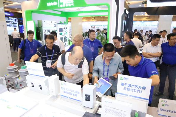 在展示区,股份公司以“融合数智多元方案 建设现代智慧配网”为主题,展示了配电整体解决方案、低压配电台区、智能配电终端、一二次融合设备等,并携带实物参展,展示了数字式DTU、数字式FTU、国网标准化集中式DTU、内置隔离柱上断路器、国网标准化罩式FTU、分布式电源综合控制终端、行波测距FTU、新一代标准化全航插站房配电自动化终端、分布式小电流接地选线选段装置、基于国产芯片的分散式DTU、低压柔直互联装置等。